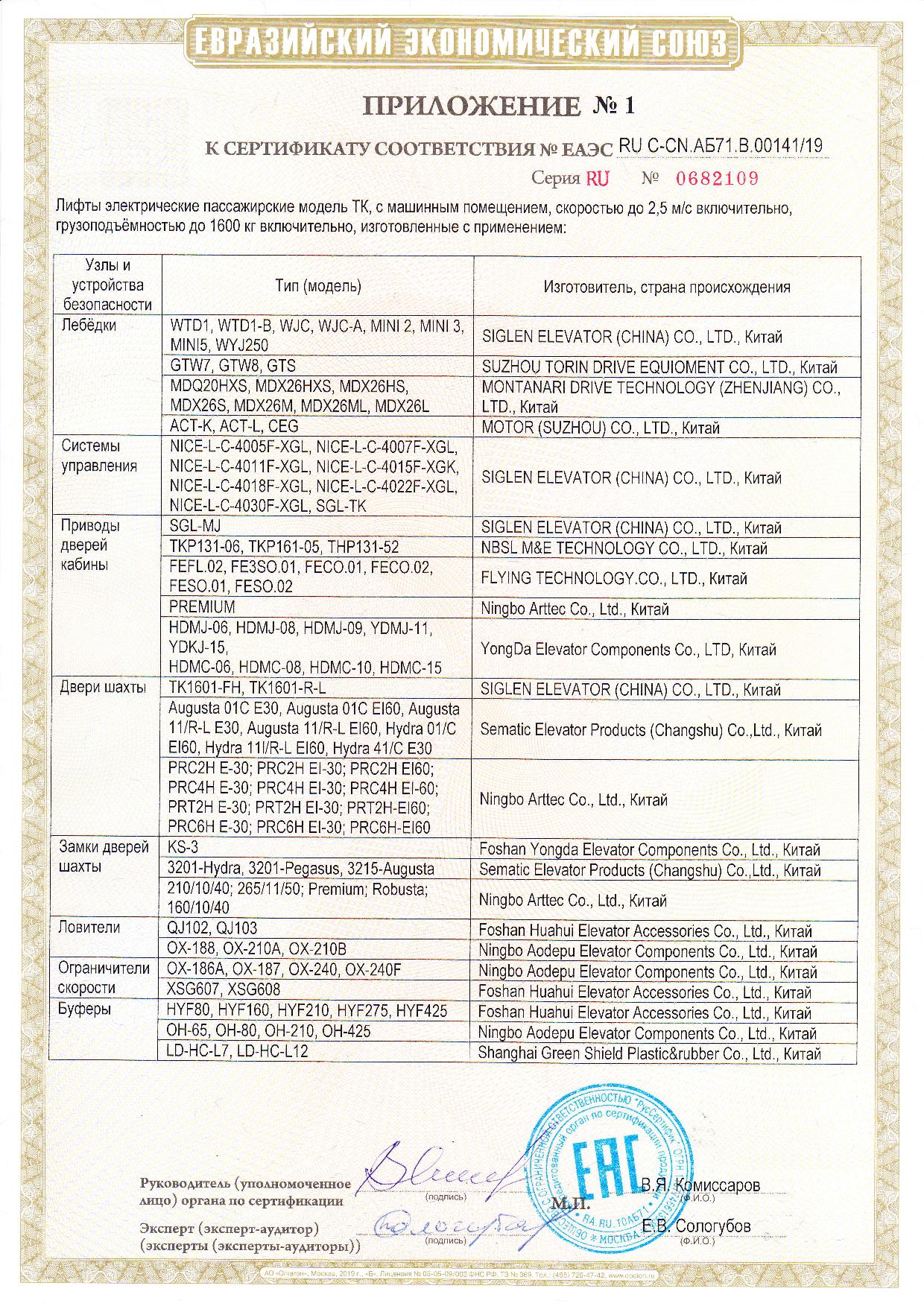 - соответствует требованиям ТР ТС 011/2011 безопасность лифтов и гостам по которым он выпущен . Необходимо отметь что лифт оснащен устройствами безопасности - ловители, ограничитель скорости, замки дверей шахты , буфер кабины и противовеса , система защиты от неконтролируемого движение кабины и превышение движение кабины. Лифты в соответствии с руководством по эксплуатации подвергаются ежемесячному осмотру , а также от зависимости моделей лифта и требований завода изготовителя ежеквартальному полугодовому или годовому техническому обслуживанию. Лифты проходят проверку периодического технического освидетельствования ежегодного.